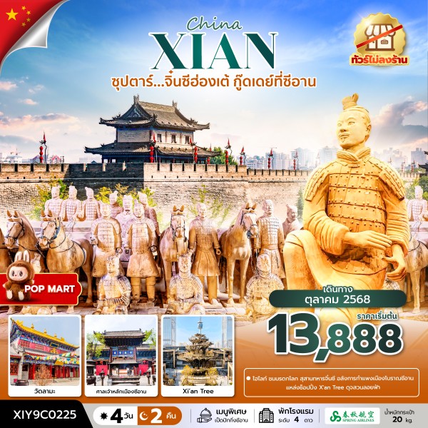 CHINA YCUZH0125 ซุปตาร์...กาลครั้งหนึ่ง ณ ซีอาน 6 วัน 5 คืน ไม่ลงร้าน (APR-NOV 2025) บินเย็น-กลับเที่ยง 24 - 29 ตุลาคม 2568 ซุปตาร์...กาลครั้งหนึ่ง ณ 22,888 28,888 2